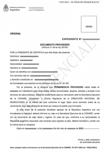 Una vez formalizada la solicitud, la Secretaría Ejectiva de Co.Na.Re. te entregará tu Documento Provisorio, que acredita tu condición de solicitante y tu permanencia regular en el país.