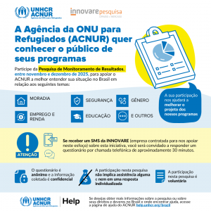 Entre novembro e dezembro de 2025, a Agência da ONU para Refugiados (ACNUR), em parceria com a Innovare Pesquisa e Mercado, vai realizar a Pesquisa de Monitoramento de Resultados – PMR 2025. &…. →