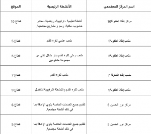 يمكنك التعرف على المبادرات والأنشطة المجتمعية المختلفة من خلال زيارة المراكز المجتمعية التالية :