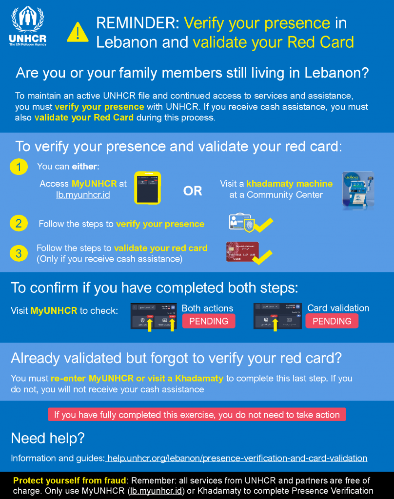 More information: help.unhcr.org/lebanon/presence-verification-and-card-validation