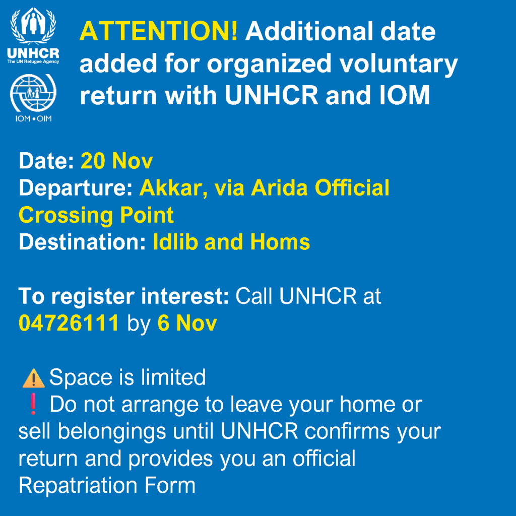 - ❗Do not arrange to leave your home or sell belongings until UNHCR confirms your return and provides you an official Repatriation Form