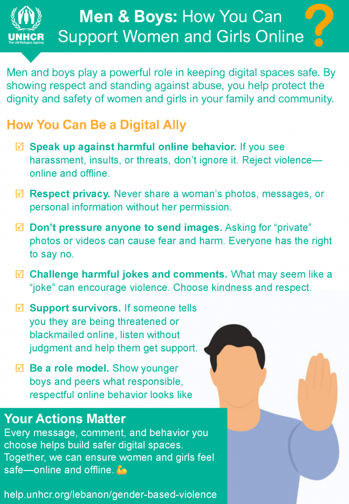 Online spaces should be places of learning and connection—not harm. But many women and girls face online harassment, pressure to send photos, blackmail, and other forms of digital violence. Men and boys have an important role in stopping this.