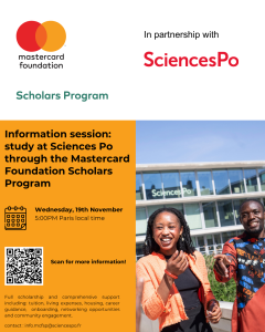 ONLINE INFORMATION SESSION Mastercard Foundation Scholars Program at Sciences Po – 19 November (English) – 26 November (French)